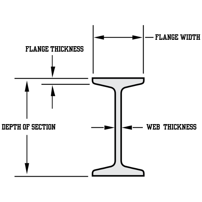 | 12 X 40.8# HR I BEAM 12 X 40.8# HR I BEAM/Asset/I-Beam-Model.png | Depth of Section (in) N/A 12 | Flange Width (in) N/A 5.252 | Flange Thickness (in) N/A 0.659 | Web Thickness (in) N/A 0.462 | Weight Per Linear Foot (lb) N/A 40.8 | Material N/A Carbon Steel | Finish N/A Bare | Grade N/A A992 |