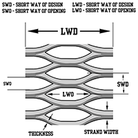 | 5.00# HRPO EXPANDED GRATING (STANDARD/RAISED) 5.00# HRPO EXPANDED GRATING (STANDARD/RAISED)/Asset/HRPO-Expanded-Grating-Model.png | Short Way of Diamond (SWD) (in) N/A 1.33 | Long Way of Diamond (LWD) (in) N/A 5.33 | Short Way of Opening (SWO) (in) N/A 0.813 | Long Way of Opening (LWO) (in) N/A 3.38 | Strand Thickness (in) N/A 0.25 | Strand Width (in) N/A 0.331 | Weight Per Square Foot (lb) N/A 5 | Material N/A Carbon Steel | Finish N/A Hot Rolled Pickled and Oiled (HRPO) | Grade N/A A1011 |