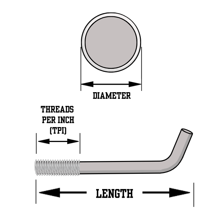 | 5/8-11 W/ BENT LEG ANCHOR BOLT 5/8-11 W/ BENT LEG ANCHOR BOLT/Asset/Bent-Leg-Anchor-Bolts.png | Diameter (in) N/A 5/8 | Pitch Size (tpi) N/A 11 | Grade N/A A307 F1554 A193 B7 | Finish N/A Galvanized Plain Zinc |