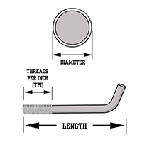 | 1-8 W/ BENT LEG ANCHOR BOLT 1-8 W/ BENT LEG ANCHOR BOLT/Asset/Bent-Leg-Anchor-Bolts.png | Diameter (in) N/A 1 | Pitch Size (tpi) N/A 8 | Grade N/A A307 F1554 A193 B7 | Finish N/A Galvanized Plain Zinc |